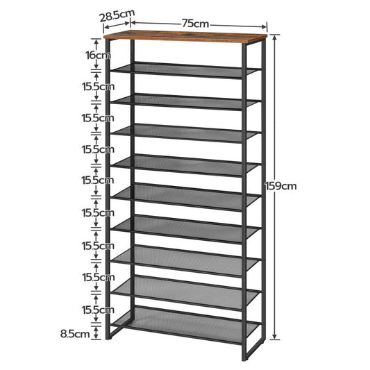 HOOBRO 10-Tier Shoe Rack, Large Capacity Shoe Organizer Shelf, Shoe Storage Unit for 27-36 Pairs of Shoes, for Entryway, Hallway, Closet, Dorm Room, Industrial