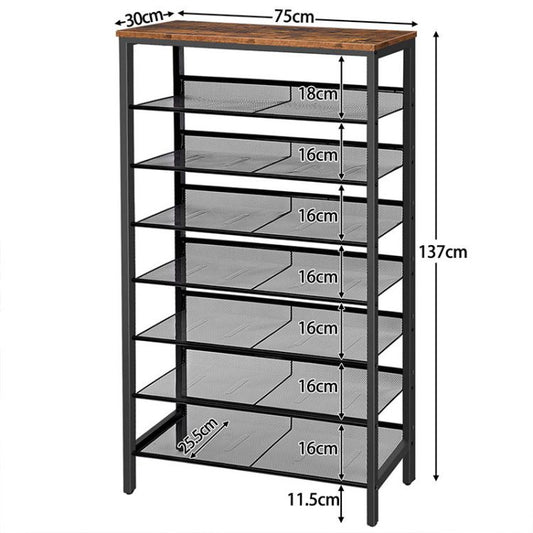 HOOBRO 8-Tier Shoe Rack, Large Capacity Shoe Shelf, Stable and Sturdy, Shoe Storage Organizer with Flat & Slant Adjustable Metal Shelves, for 21-28 Pairs of Shoes, Space Saver