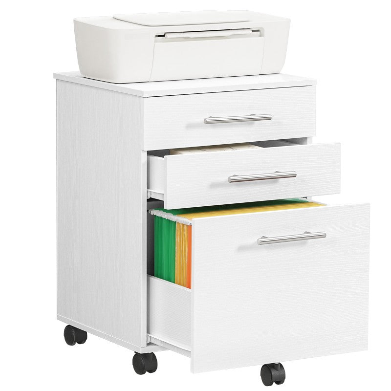 HOOBRO Filing Cabinet, 3-Drawer File Cabinet, Office Drawer for Home Office, for A4 Documents, Hanging Files, Mobile Pedestal on 5 Wheels