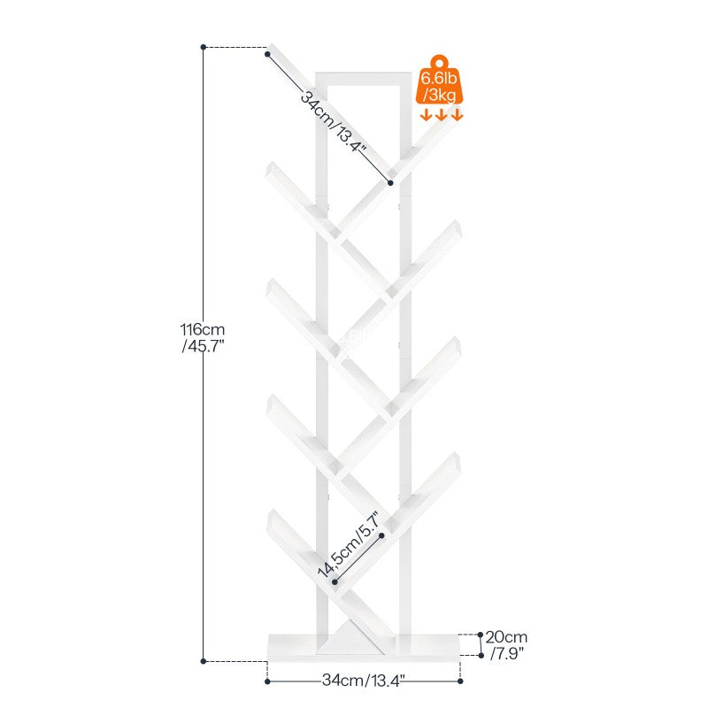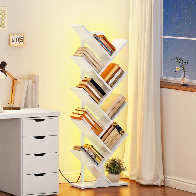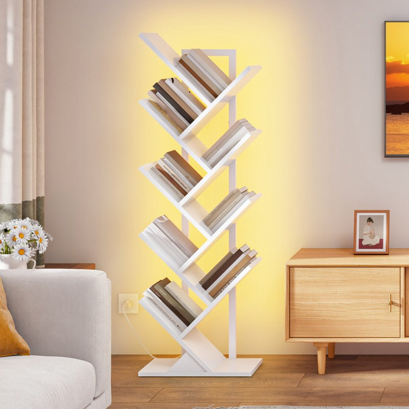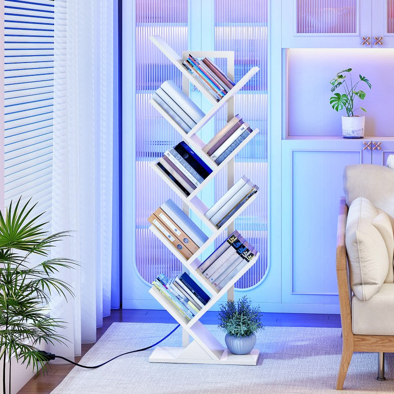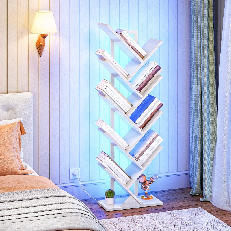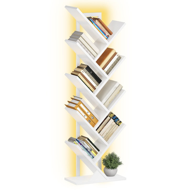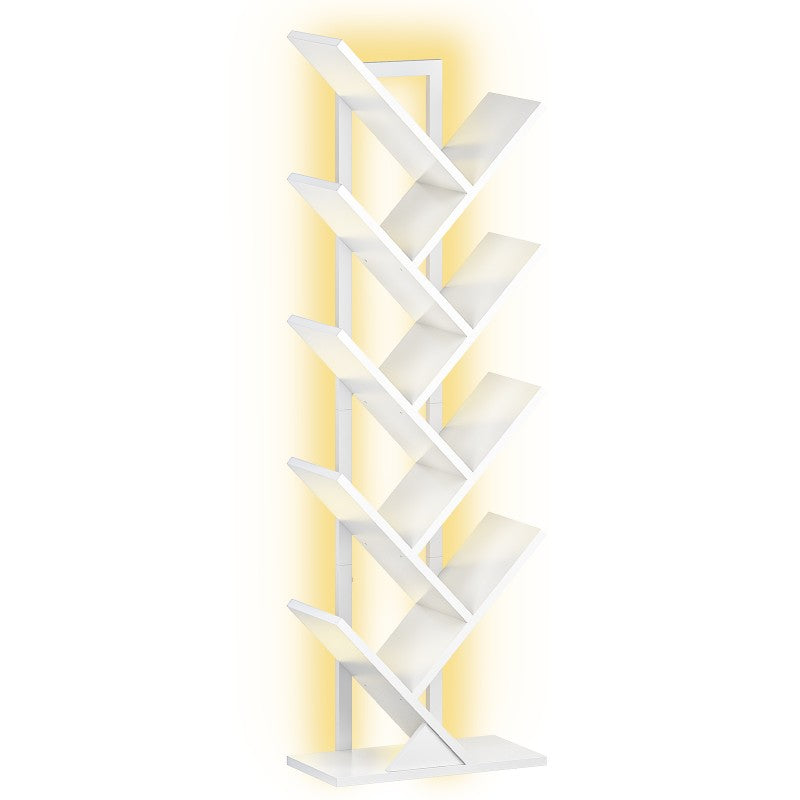 HOOBRO 9-Tier Tree Bookshelf with LED Lights, Floor Standing Book Shelf, Modern Wooden Bookcase with Metal Frame, for Books, CD, Living Room, Bedroom, Office