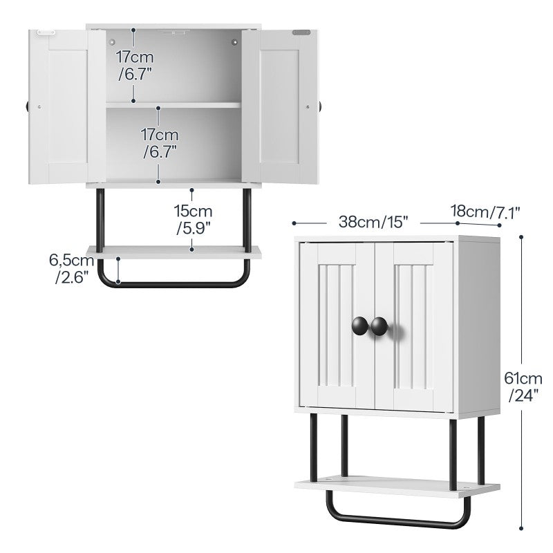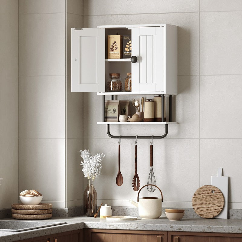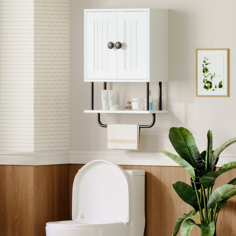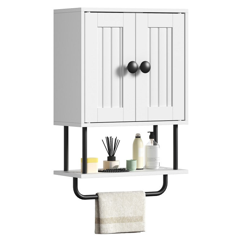 HOOBRO Bathroom Cabinet, Bathroom Wall Cabinet with Double Doors, Adjustable Shelves and Towel Bar, Wooden Storage Cupboard, Wall Mounted Towel Storage Organizer for Kitchen