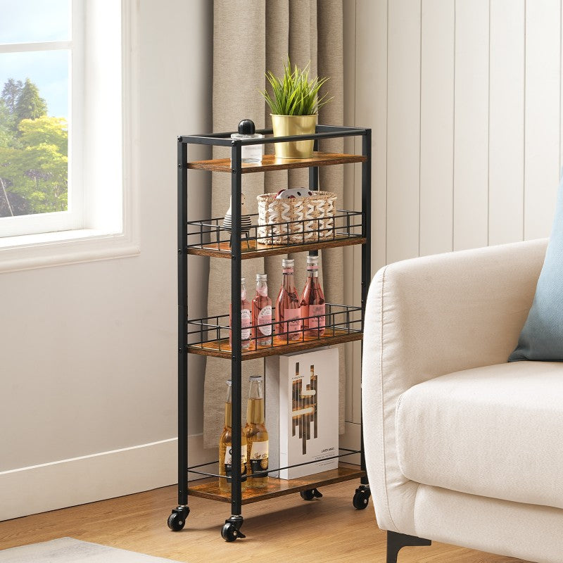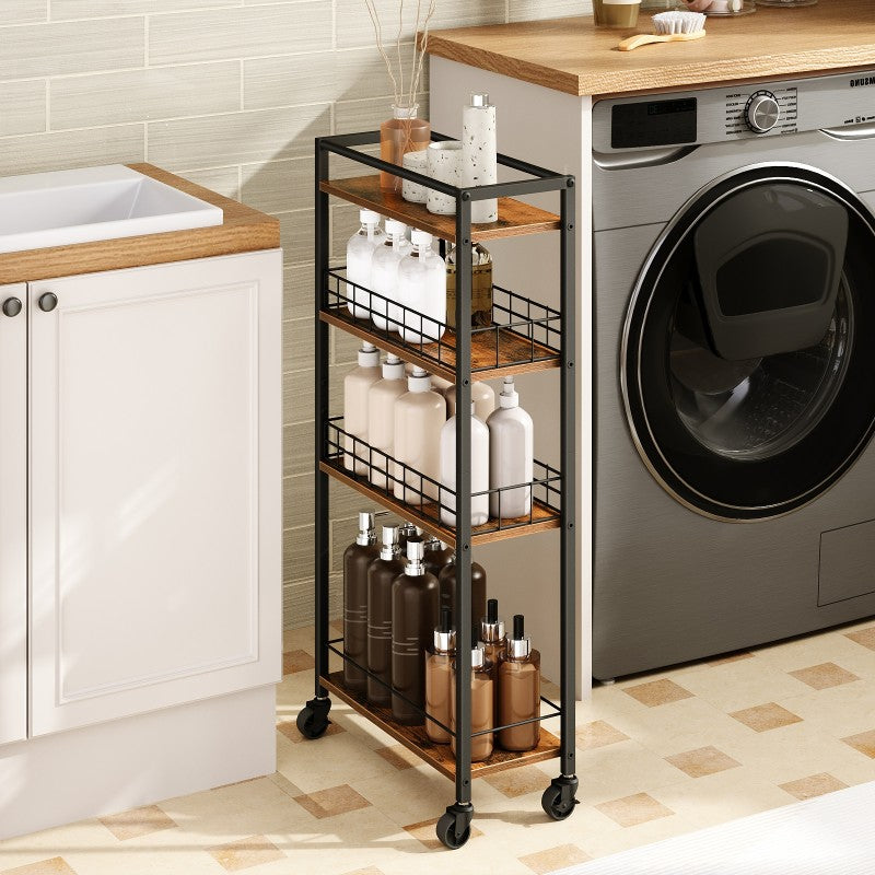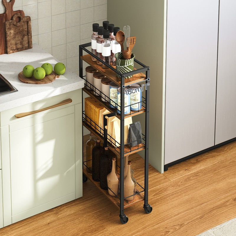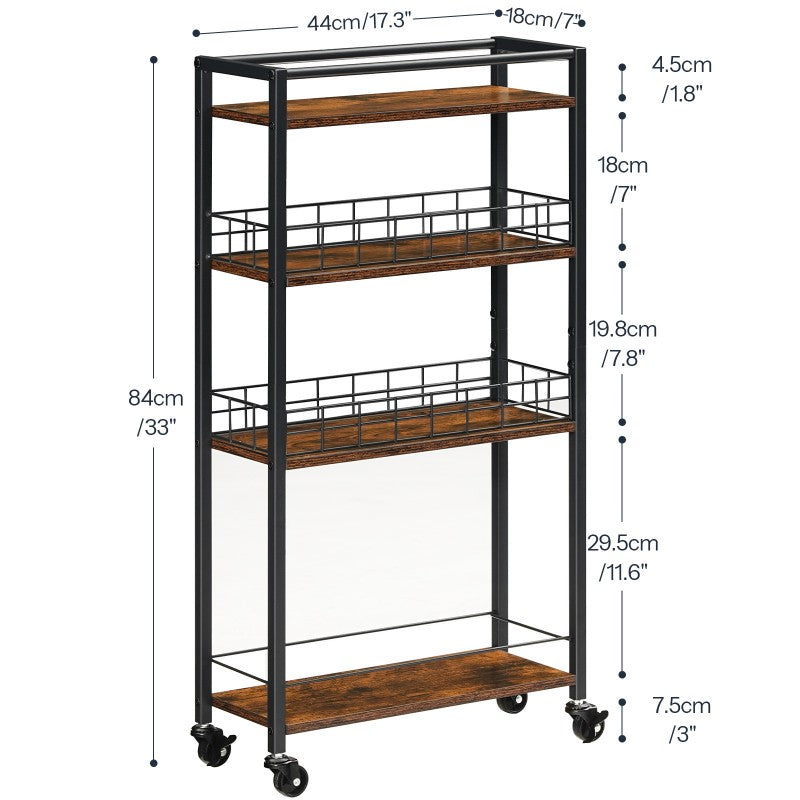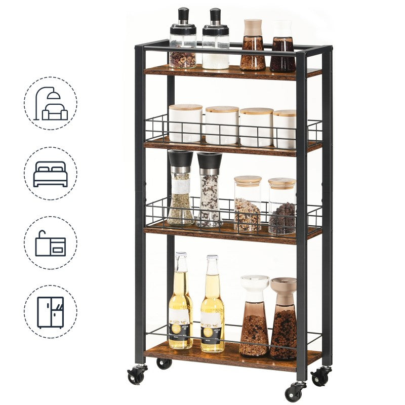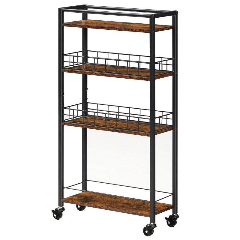 HOOBRO 4-Tier Kitchen Storage Cart, Narrow Rolling Cart, Versatile Serving Trolley, with Mesh Baskets, for Kitchen, Bathroom, Dining Room, Laundry Room