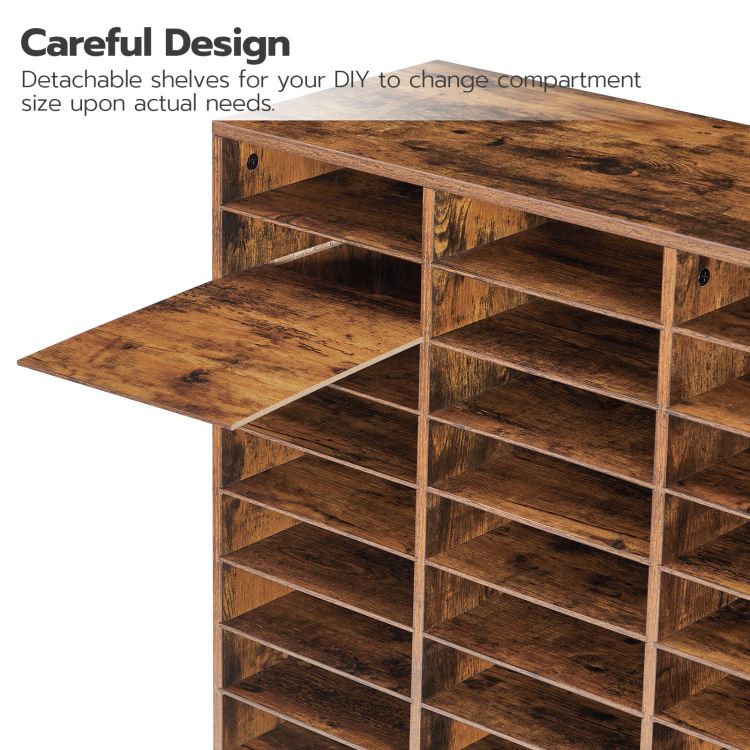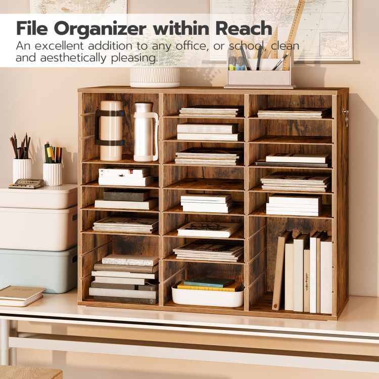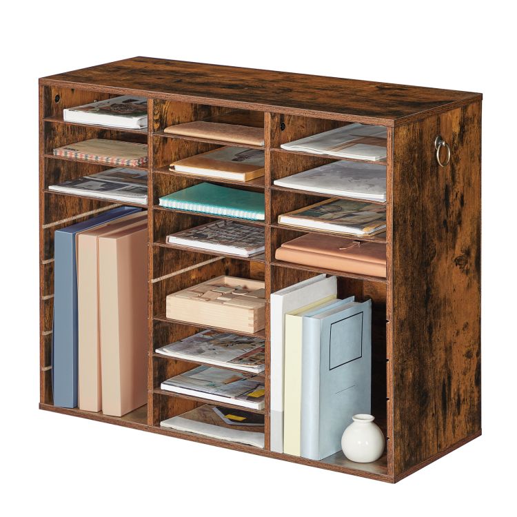 HOOBRO Filing Tray, 27-Compartment Wooden Literature Organizer, File Organizer for A4 Paper, Desk Organiser with Adjustable Shelves, File Sorter, for Office, Study, Library