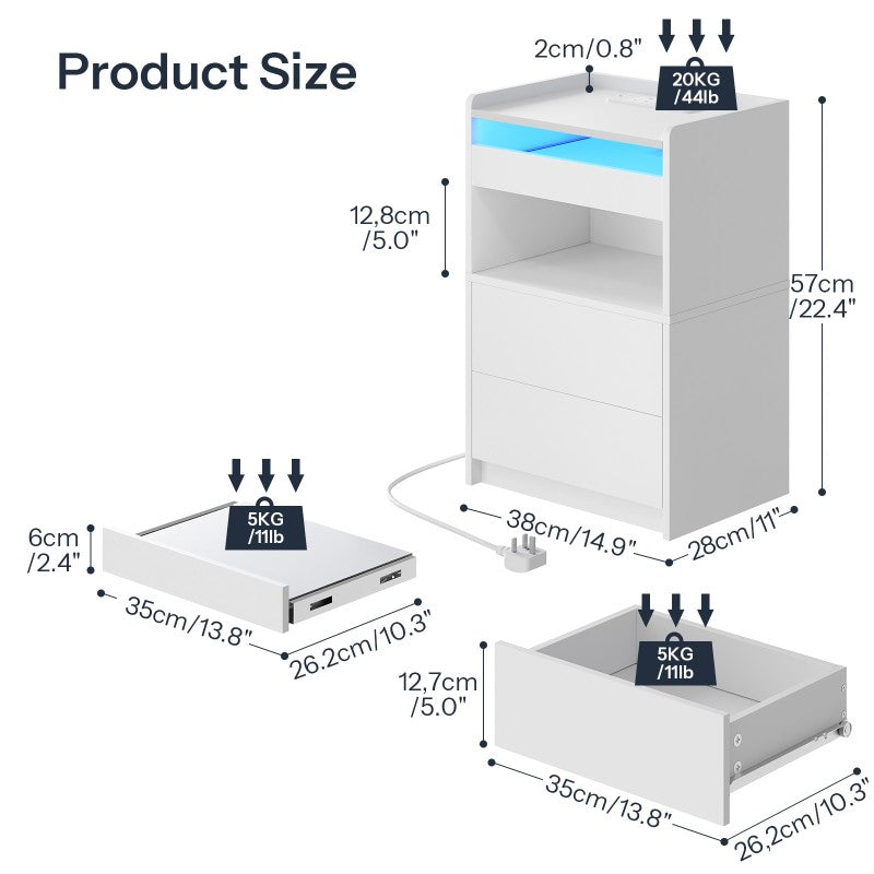 - Charging Hub: Equipped with 1 standard socket and 2 USB-A ports, the nightstand provides power for smartphones, laptops, and other electric devices. Whether used as an end table or bedside table, it eliminates low-battery concerns