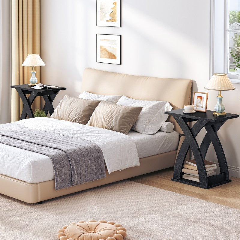 HOOBRO Narrow Side Table, Modern Slim Sofa Table with Open Storage, X-Design Narrow Bedside Table Nightstand for Living Room and Bedroom