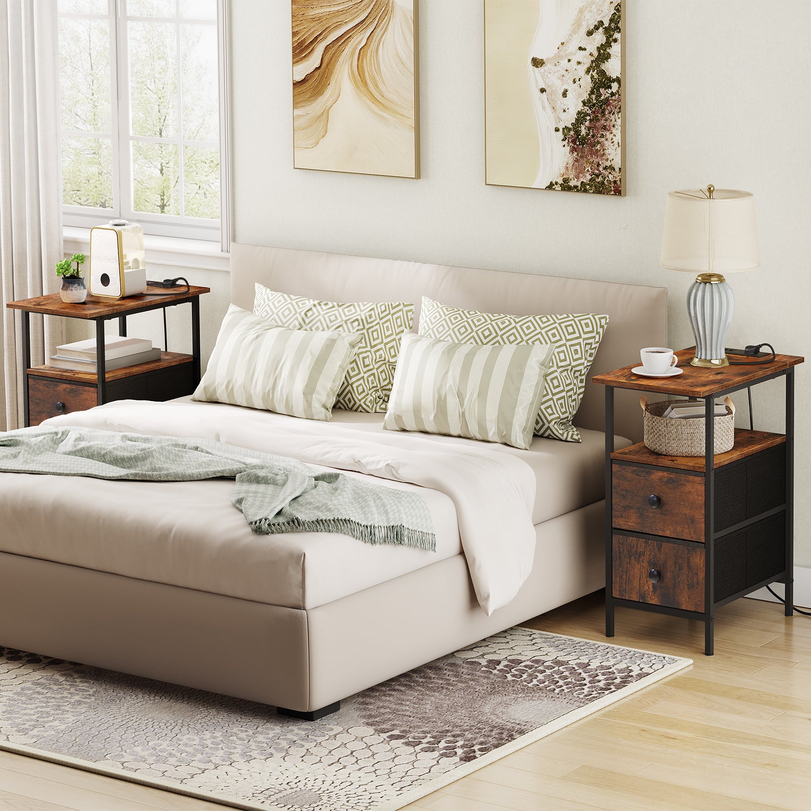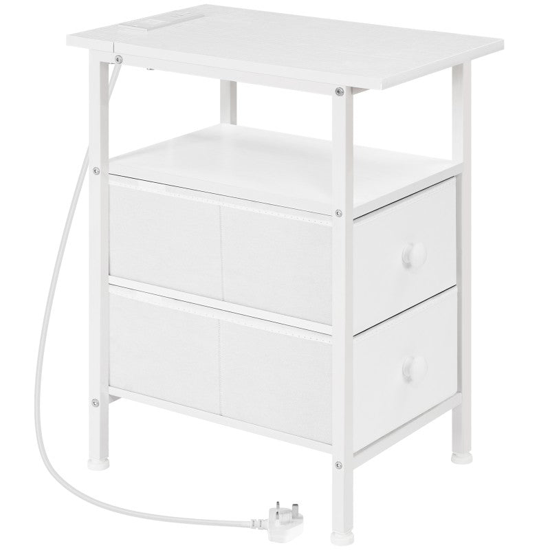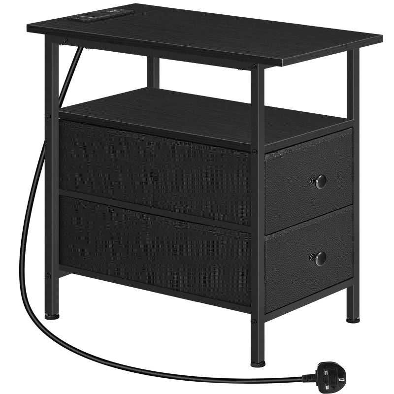 HOOBRO Narrow Bedside Table with Charging Station, with 2 Non-Woven Drawers, Slim Side Table with USB Ports and Power Outlets, Narrow Side Table for Small Spaces