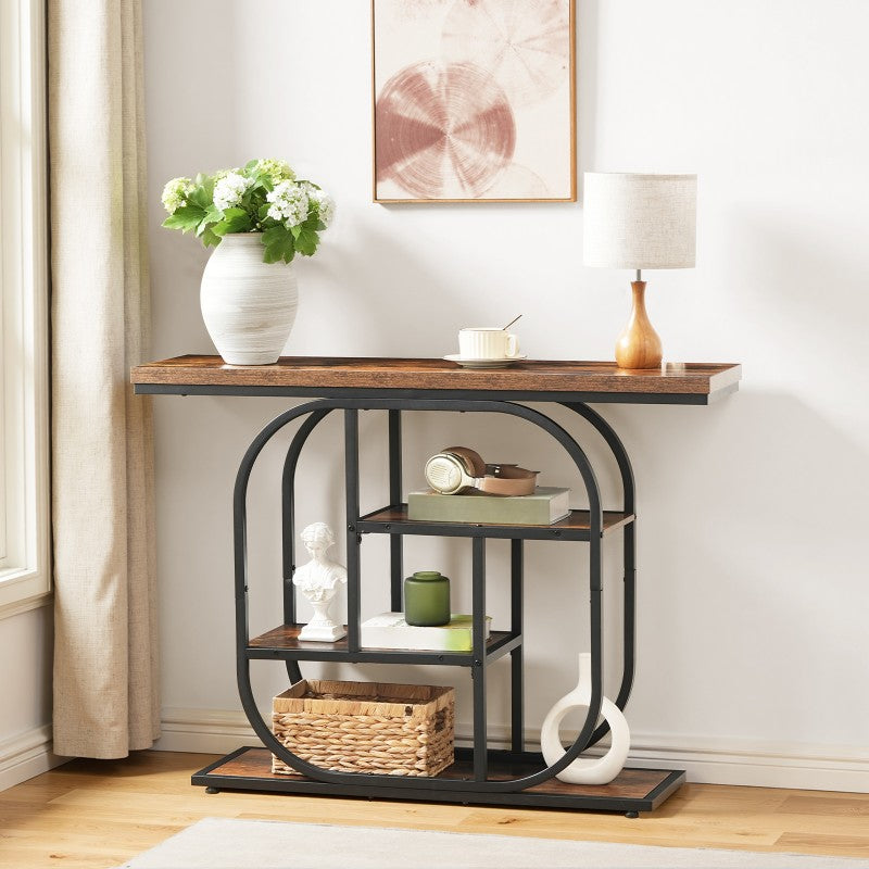 HOOBRO Narrow Console Table, 4-Tier Hallway Table, 110 cm Industrial Display Table with Storage, Geometric Frame, for Entryway, Foyer, Living Room, Bedroom, Staircase