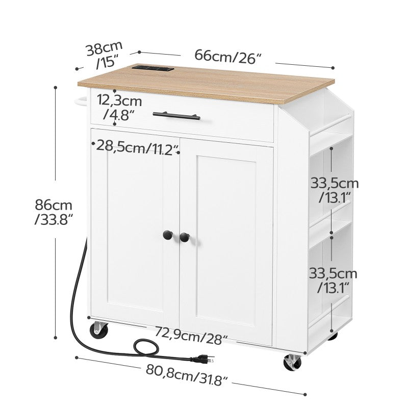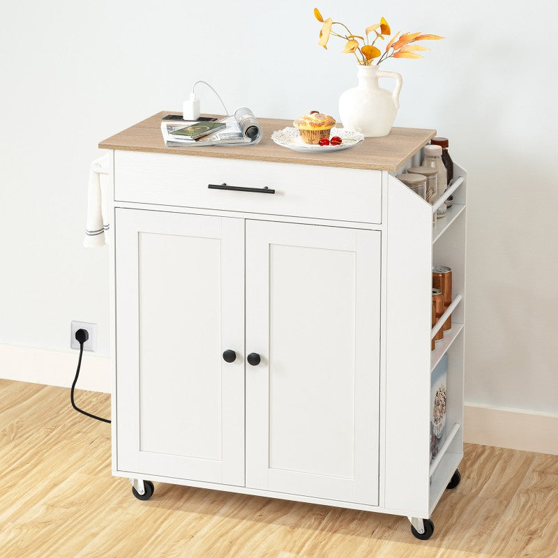 HOOBRO Kitchen Island with Power Outlet, Rolling Kitchen Island on Wheels with Spice Rack and Drawer, Utility Serving Cart, for Home, Dining Room