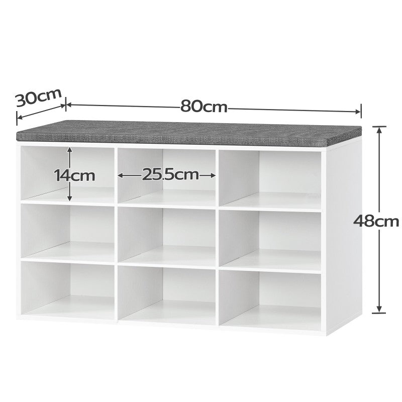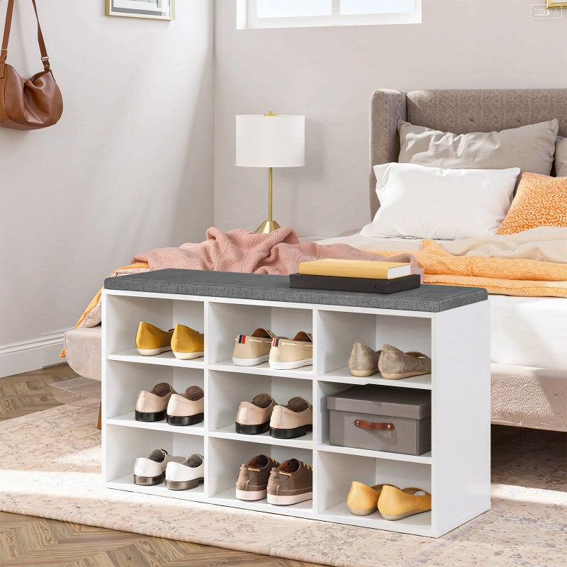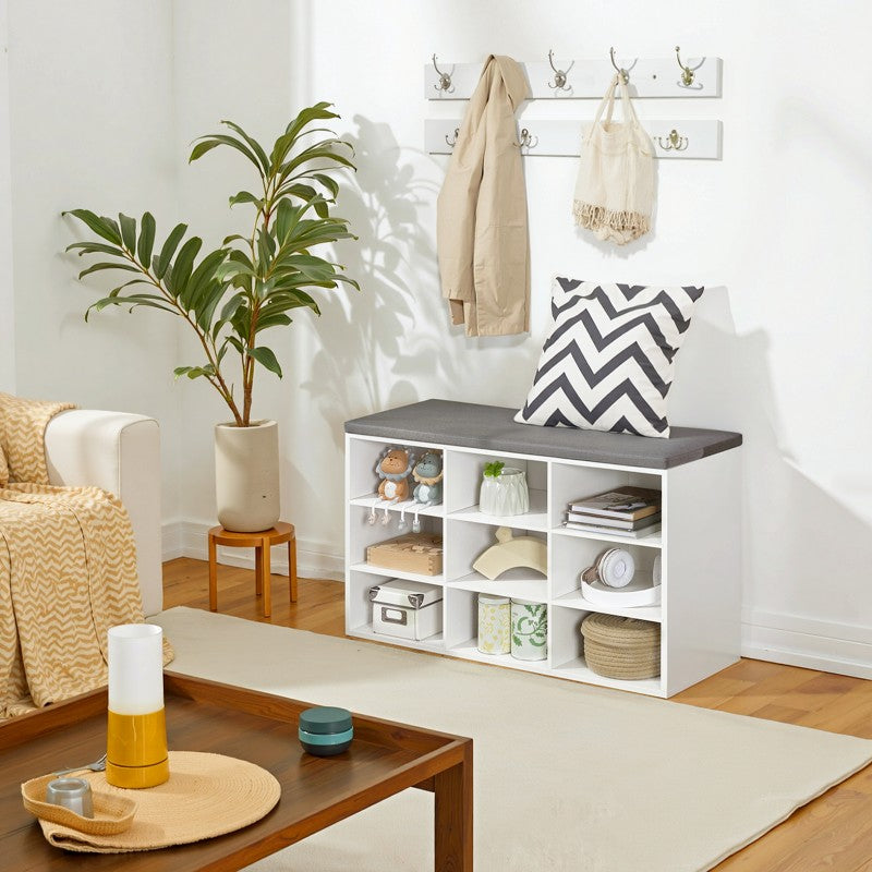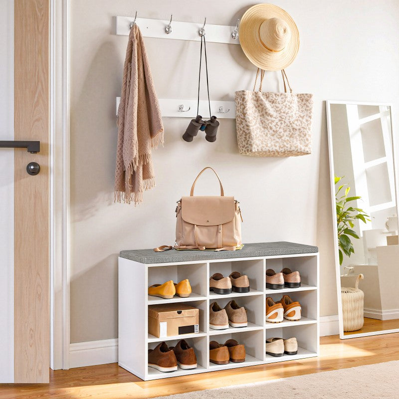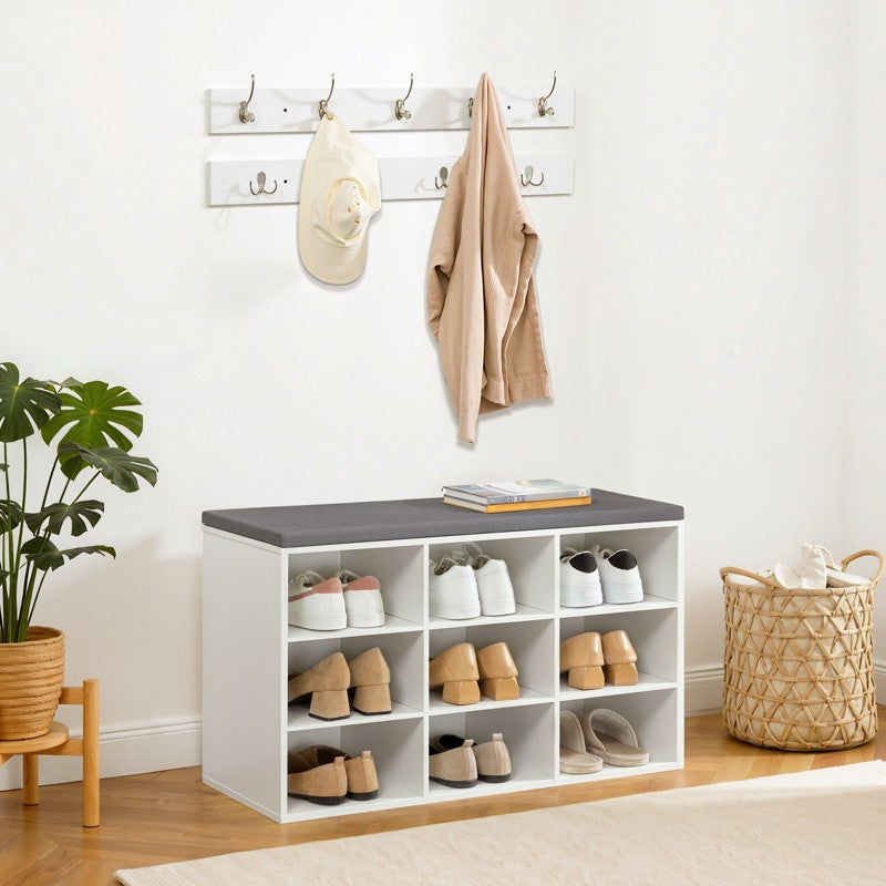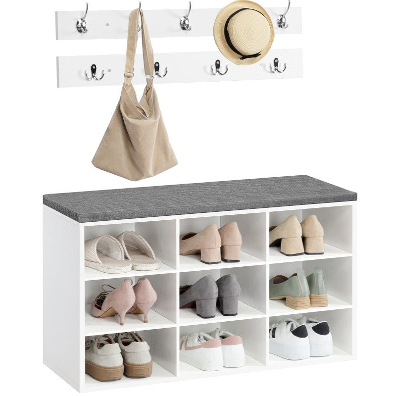 HOOBRO Shoe Storage Bench with Cushion and Coat Hooks, Shoe Rack Bench with Padded Seat, 80 cm Coat Rack for Hallway, 9 Compartments, Storage Cabinet for Bedroom, Living Room